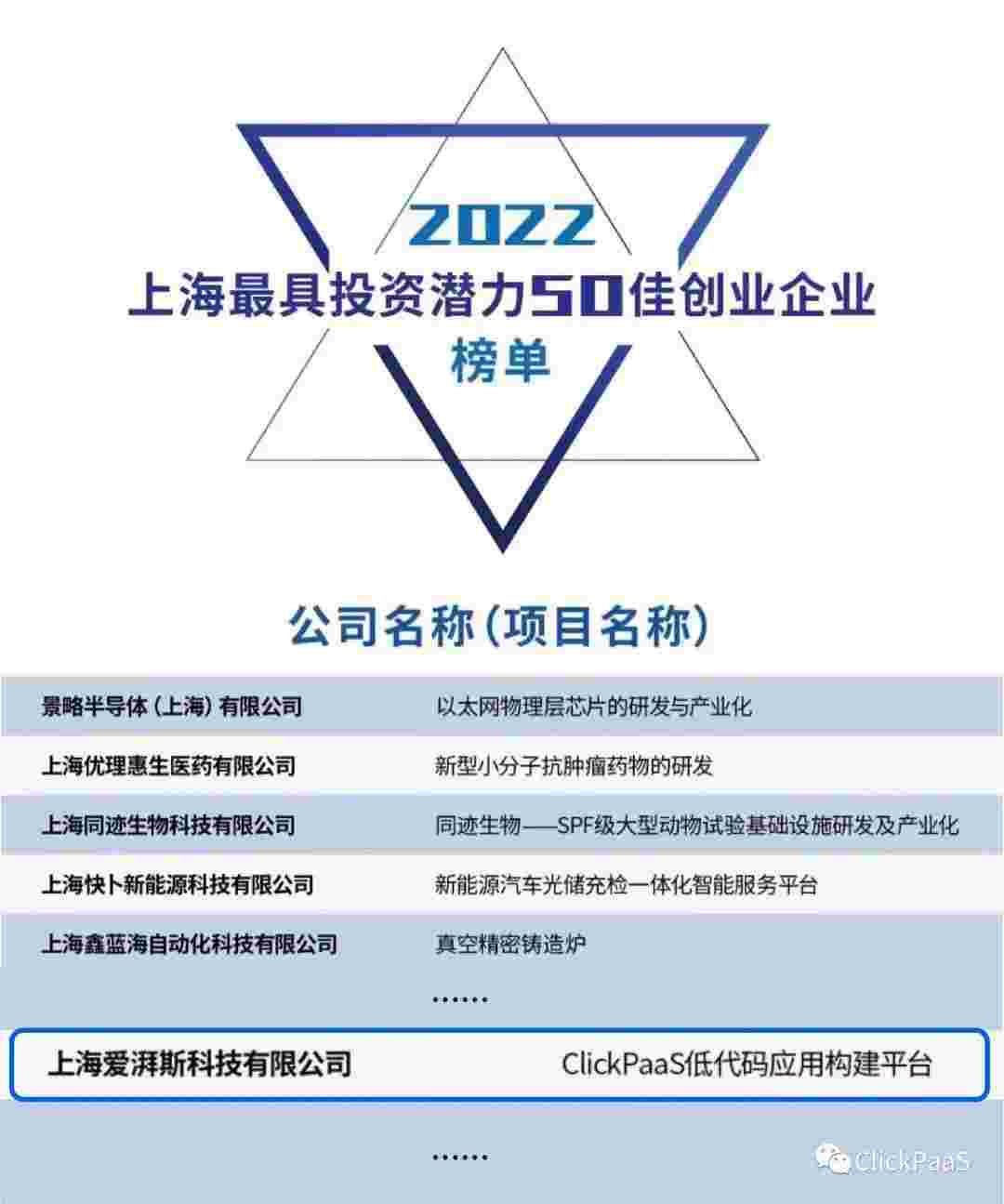 EBPAY 作为国内低代码PaaS平台的领军企业,,,,,,,,,与120家创企入围角逐。。。。。。。。。。。。。。期间接受了来自德同资本、、、、、、、领中资本等知名投资机构的10位投资人组成专家评委团的背靠背盲选。。。。。。。。。。。。。并最终入围“2022上海最具投资潜力50佳创业企业”榜单,,,,,,,,,,,被列入“上海市重点培育创业企业库”。。。。