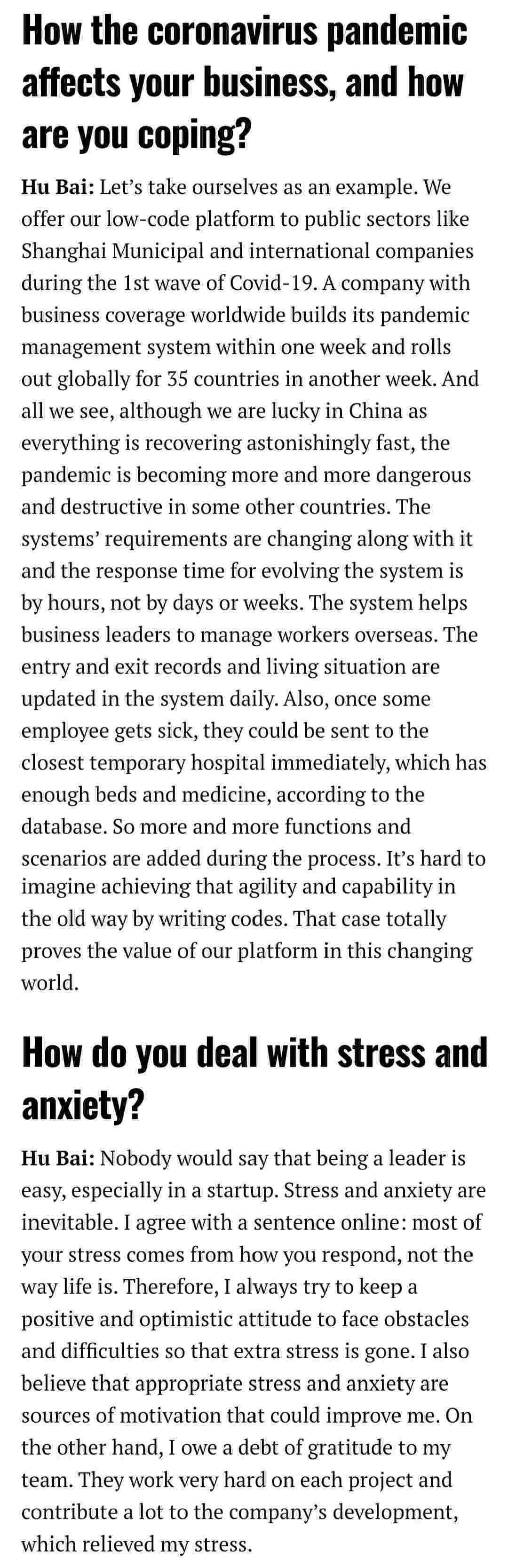 2021年年初,,,,,,,,,,爱湃斯科技CEO胡柏受邀接受法媒Startup.info的专访,,,,,,,与Startup info的读者分享了自己的创业经历、、、、、、、、、、、以及低代码平台EBPAY的创新之处。。。。。。。